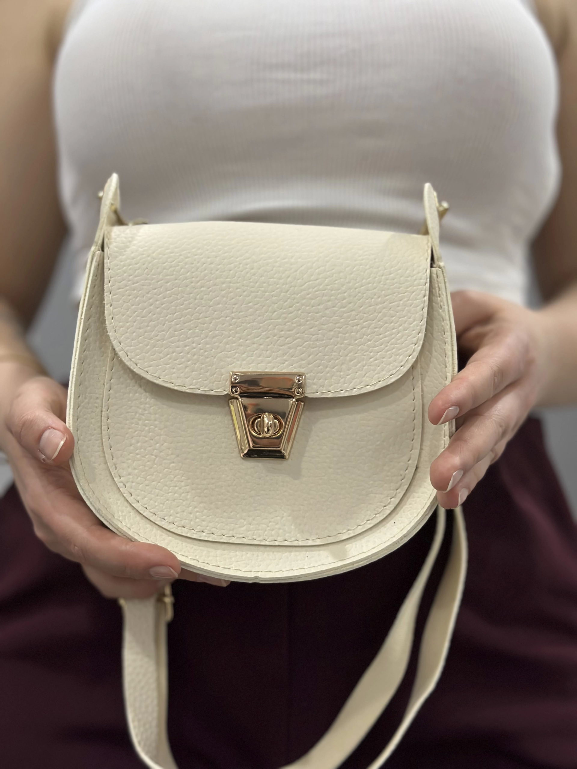 Klasik Kapaklı Bej Cilt Çanta